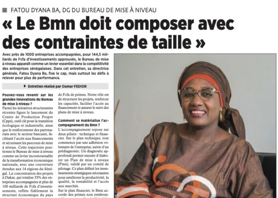 Le Bureau de Mise à Niveau constitue l’instrument du dispositif institutionnel et technique de l’Etat du Sénégal, chargé de la mise en œuvre des politiques et programmes de mise à niveau des entreprises sénégalaises. -